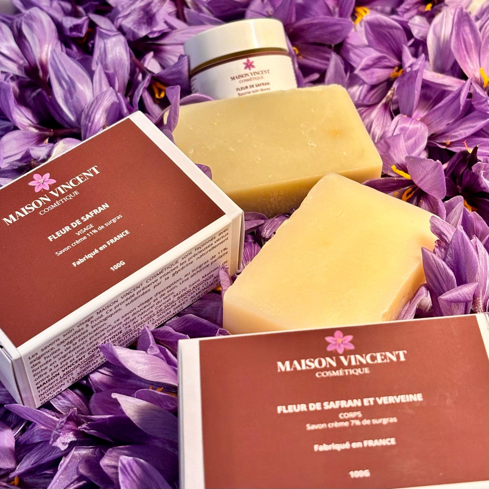 • Un savon surgras saponifié à froid (11 %) aux huiles précieuses et infusé de safran pour une peau douce, apaisée et éclatante.